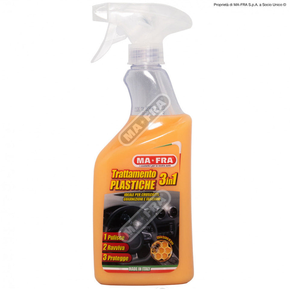 Ma-Fra, Trattamento 3in1 Plastiche, Pulisce, Ravviva e Protegge le Parti Interne dell'Auto, Creando una Barriera Anti Raggi UV, Formato 500ml